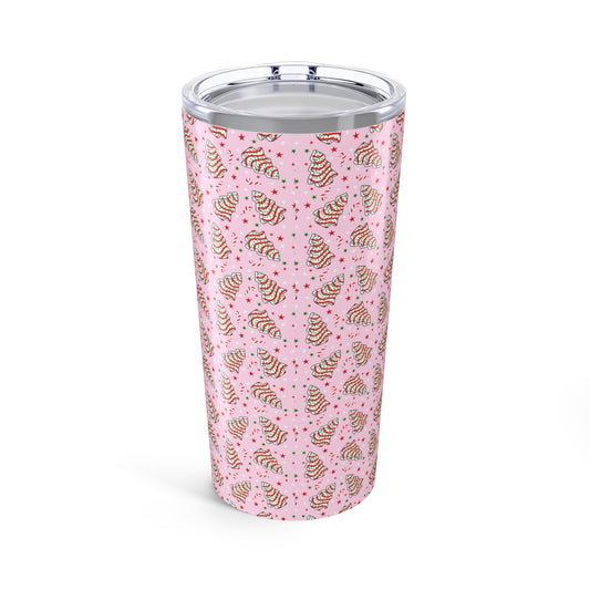 Pink Christmas Tree Cake Pattern Tumbler – 20oz Stainless Steel, Vacuum-Insulated