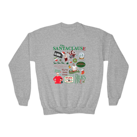 Youth Christmas Sweatshirt — Santa Claus Vintage Holiday Icons Crewneck
