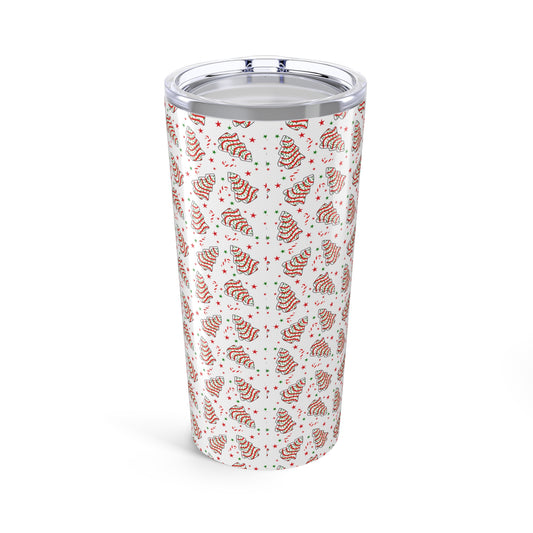 Christmas Tree Cake Pattern Tumbler – 20oz Stainless Steel, Vacuum-Insulated (White)