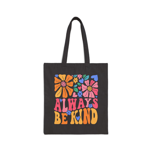 Always Be Kind Tote Bag, Eco-Friendly Shopping Bag, Floral Canvas Bag, Reusable Grocery Tote, Gift for Her, Beach Bag