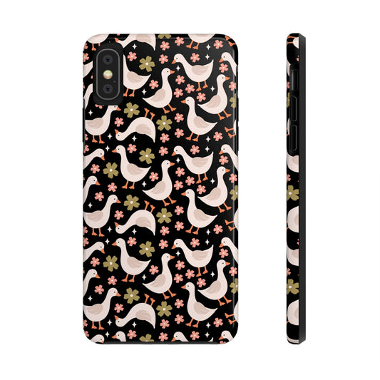 Cute Duck Pattern Phone Case, Stylish Tough Case, Gift for Duck Lovers, Floral Design, Unique Mobile Cover