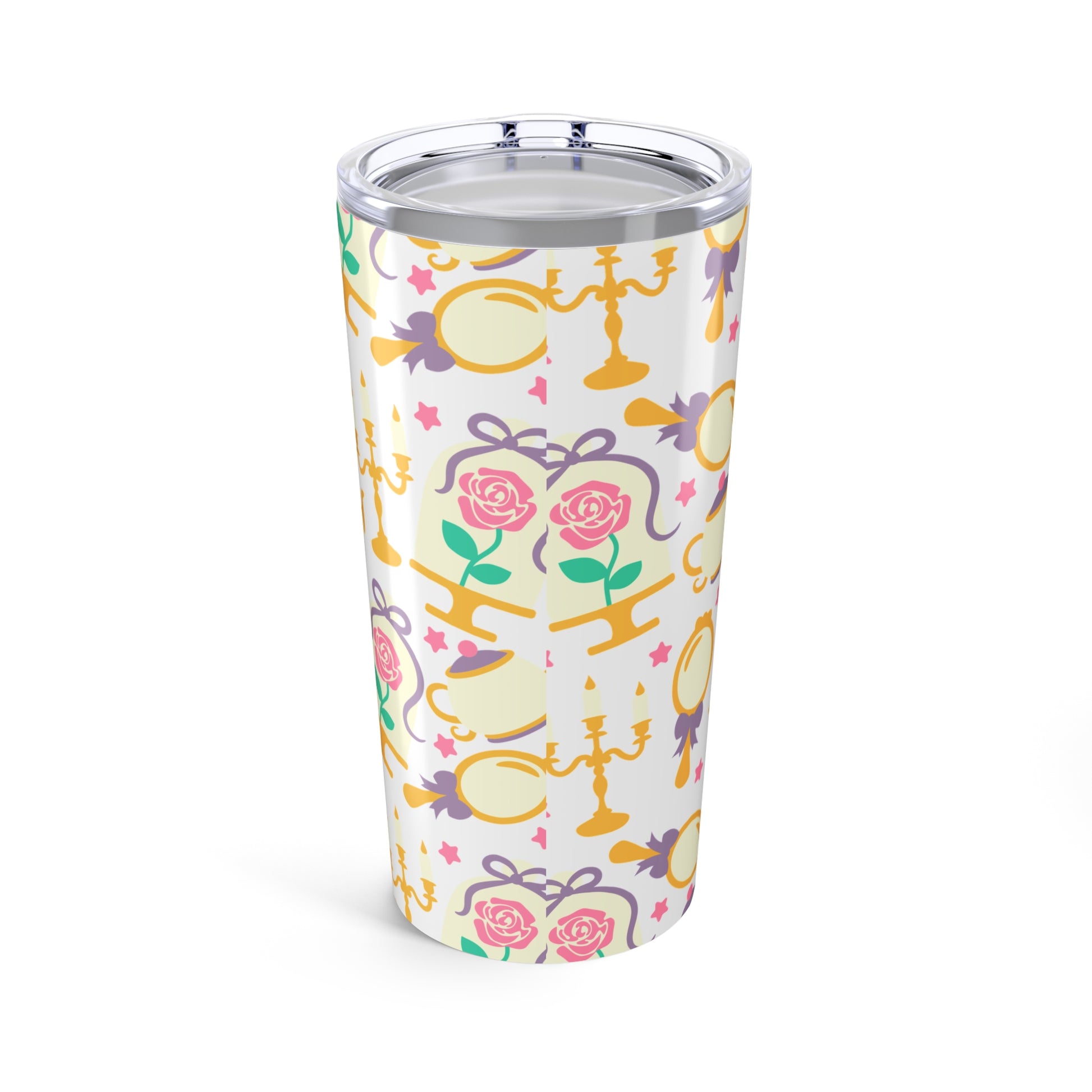 Enjoy your favorite hot or cold beverages in style with this Beauty and the Beast inspired 20 oz tumbler. Perfect for everyday use, this tumbler provides a great seal to keep your drinks at the right temperature. The glossy finish and full-color wraparound print add a touch of elegance to your drinkware collection. Suitable for dishwasher use, this tumbler is durable and resistant to rust, staining, and corrosion.