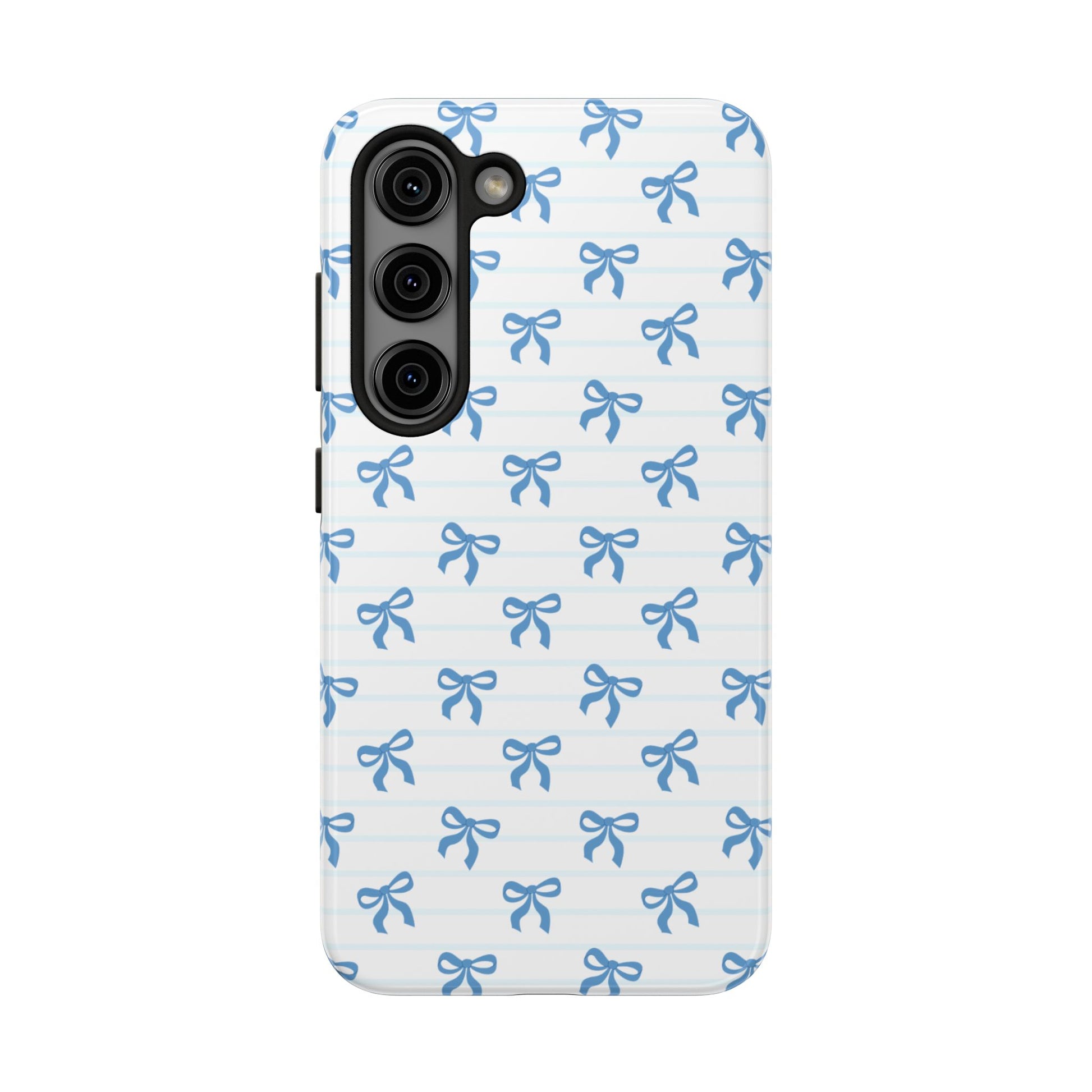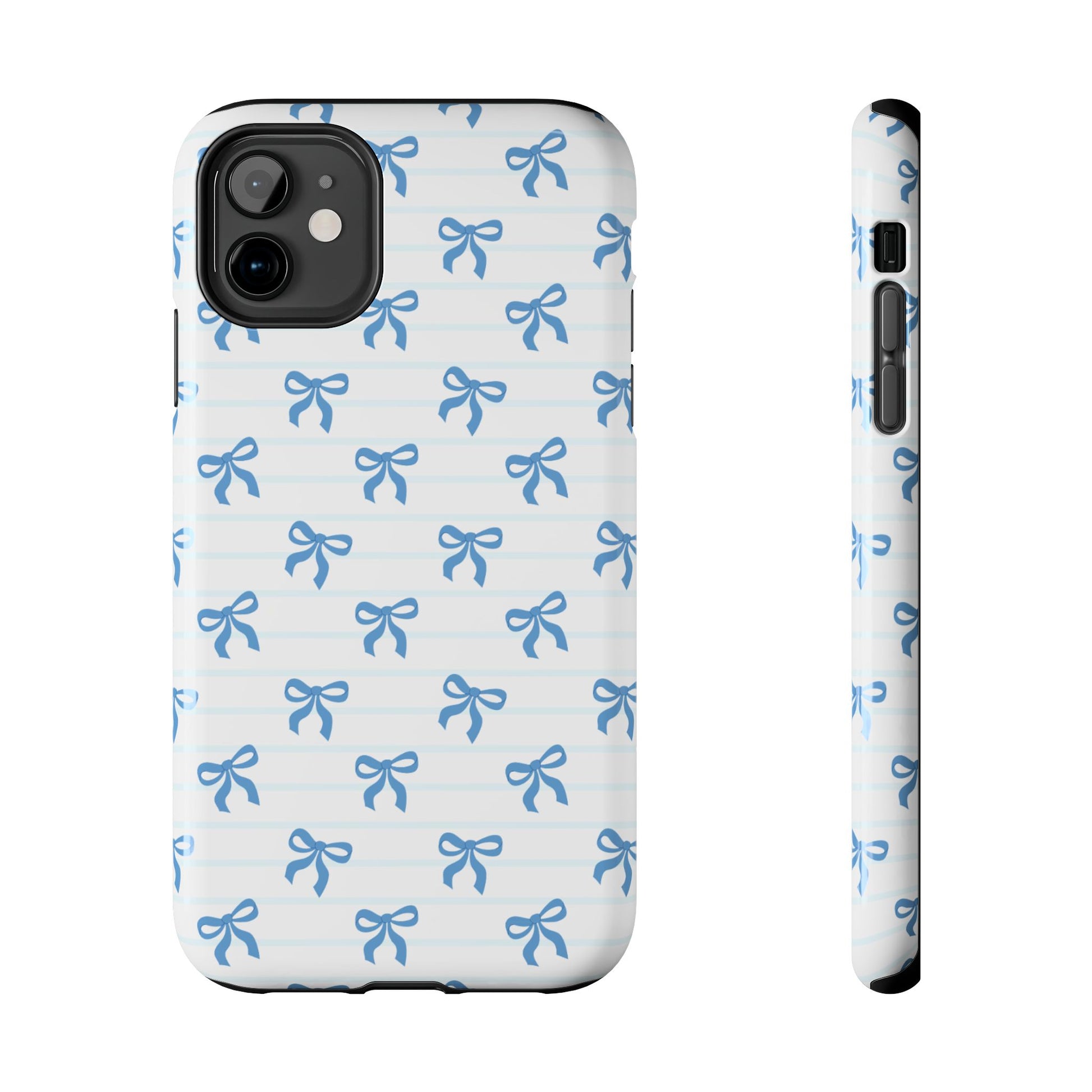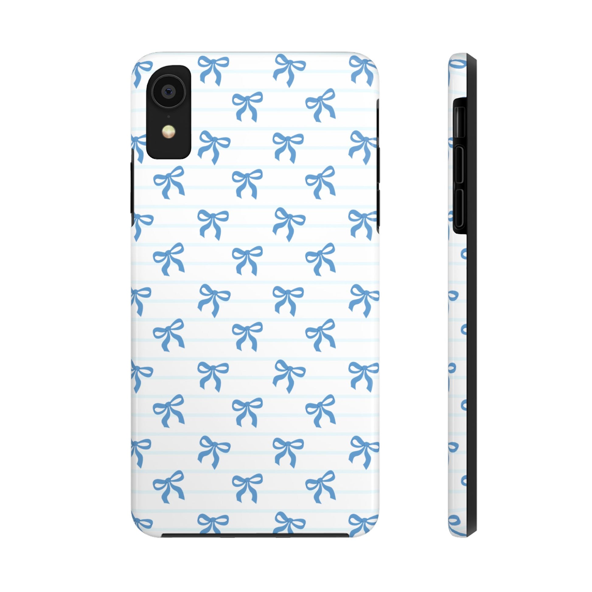 Introducing our stylish Tough Phone Cases, designed to add a touch of charm to your everyday life. With a playful blue bow pattern set against a soothing background, this case exudes a whimsical vibe perfect for those who appreciate the finer details. Ideal for students, teachers, or anyone looking to express their personality while keeping their phone safe. Whether you're on campus, at work, or enjoying a casual day out, this case seamlessly merges functionality with flair. Perfect for gifting on occasions like birthdays, back-to-school, or as a thoughtful holiday surprise for friends and family who value both style and protection.