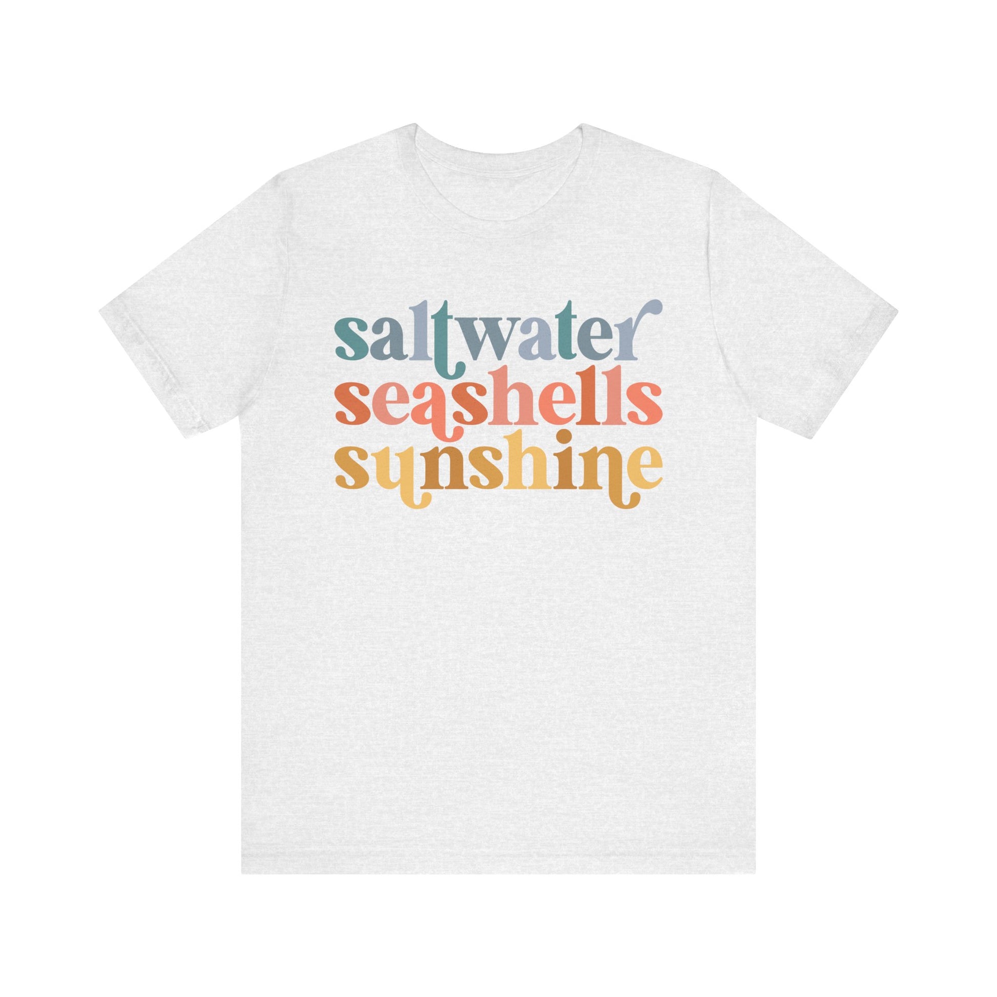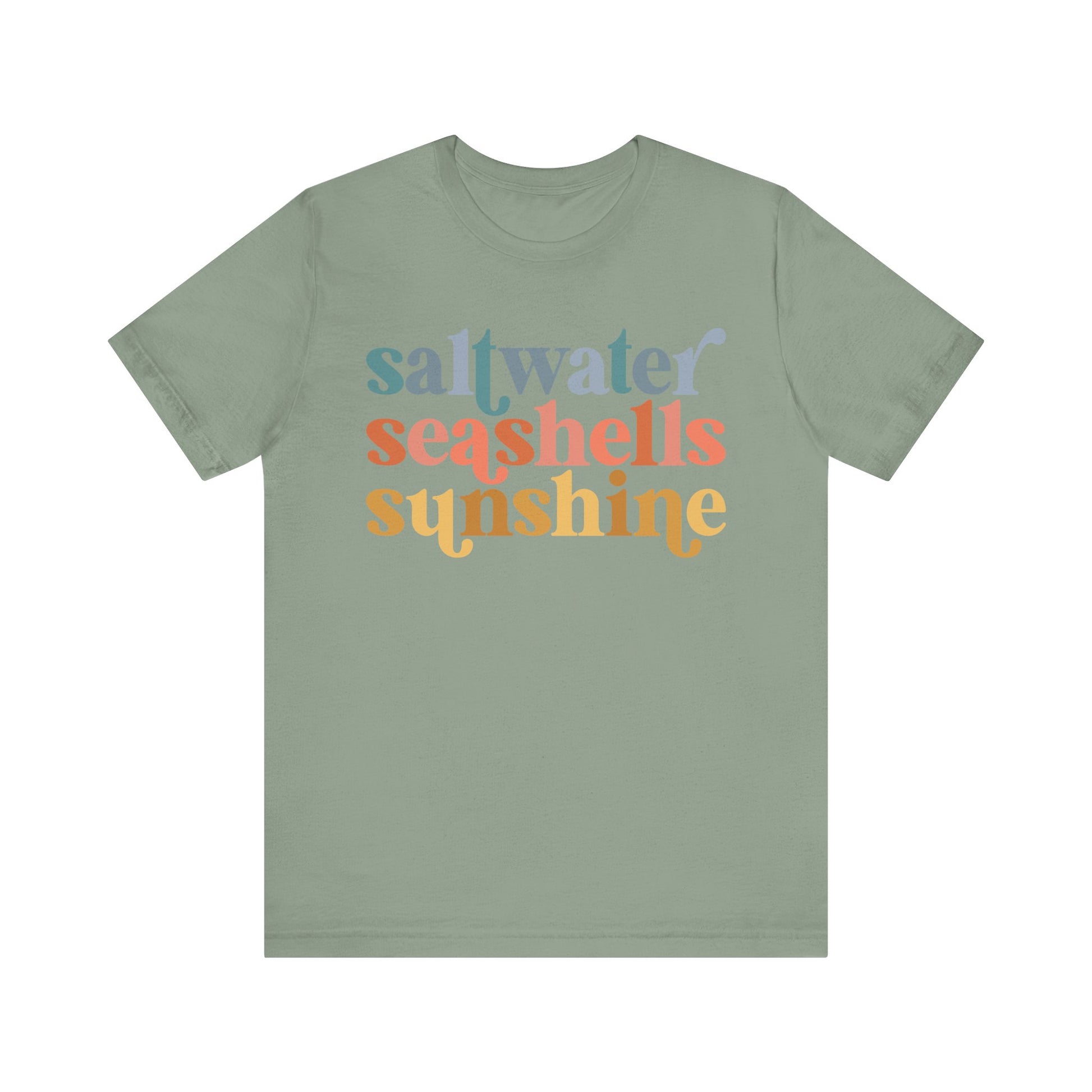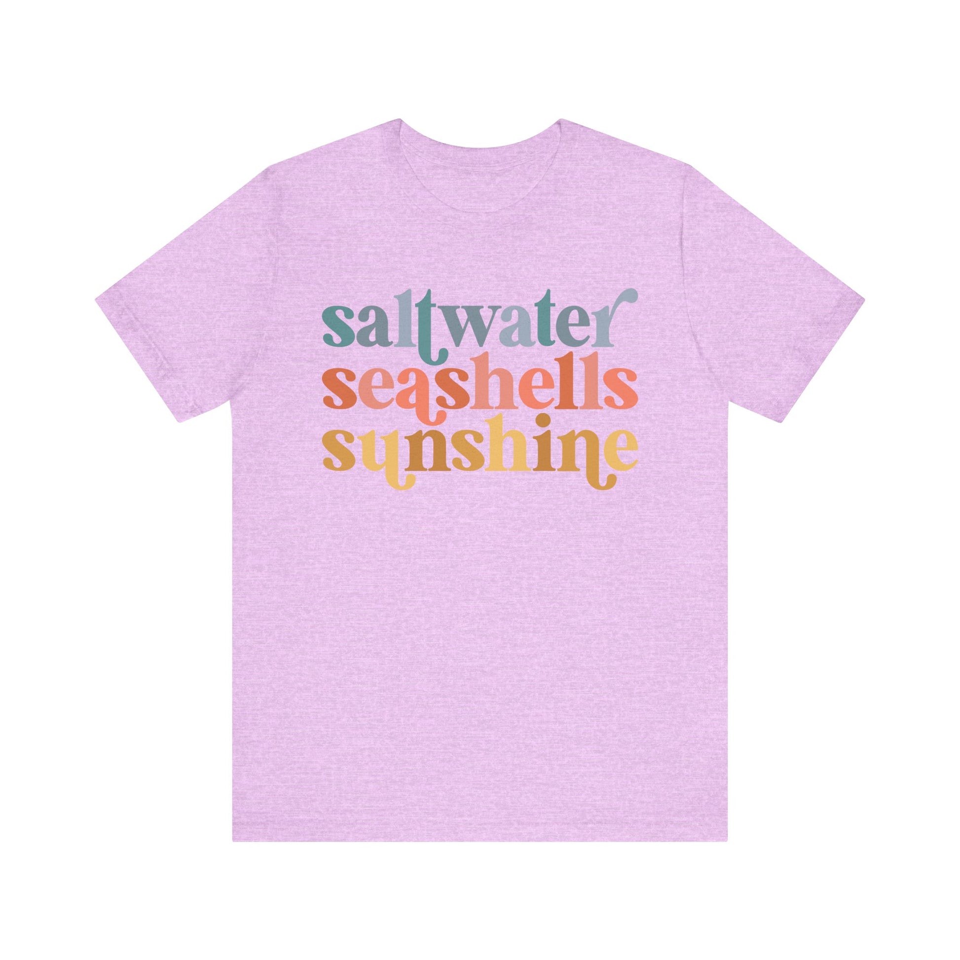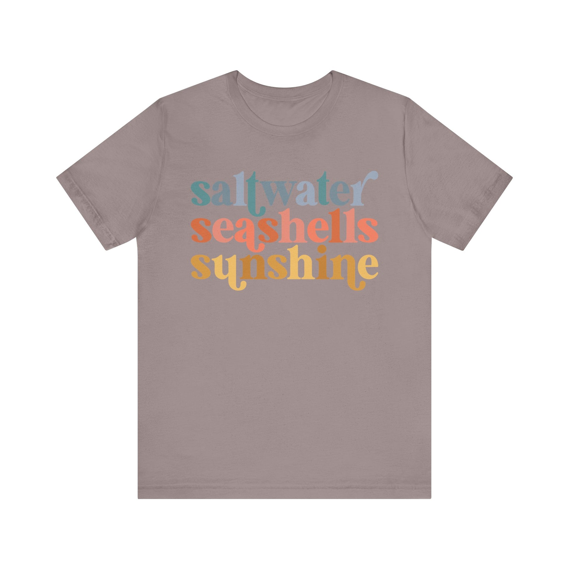 Dive into a carefree vibe with this stylish Unisex Jersey Short Sleeve Tee. Perfect for beach lovers and sun chasers, this tee embodies the spirit of summer with its playful 'saltwater, seashells, sunshine' design. It’s a great addition to casual outings, laid-back vacations, or just brightening up your everyday look. Ideal for anyone who enjoys a relaxed lifestyle, it makes a thoughtful gift for birthdays, beach trips, or holidays like summer solstice and Mother’s Day. Layer it or wear it solo; this tee is versatile enough for any occasion, reminding you to cherish life's simple pleasures.