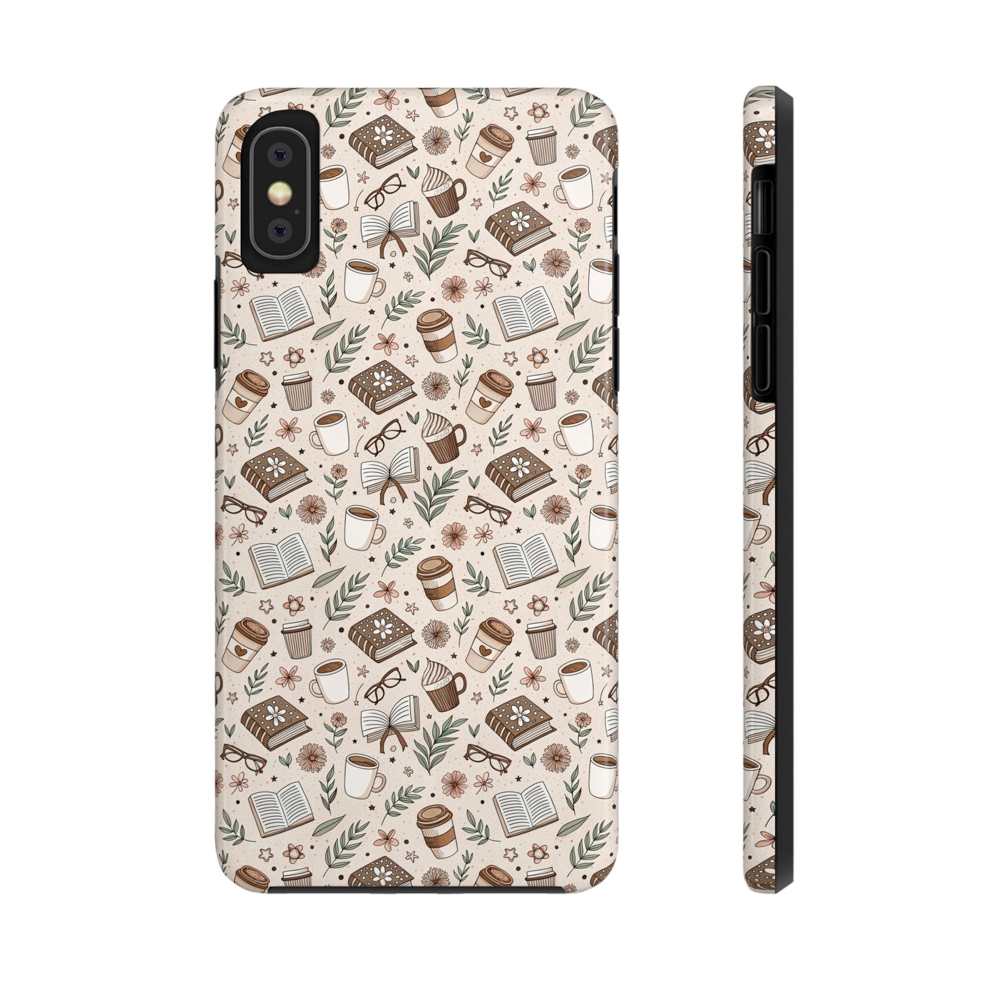 Cozy Books & Brews Tough Phone Cases - Literary Gift, Cute Coffee Pattern, Book Lover Accessory, Unique Phone Cover, Gift for Readers