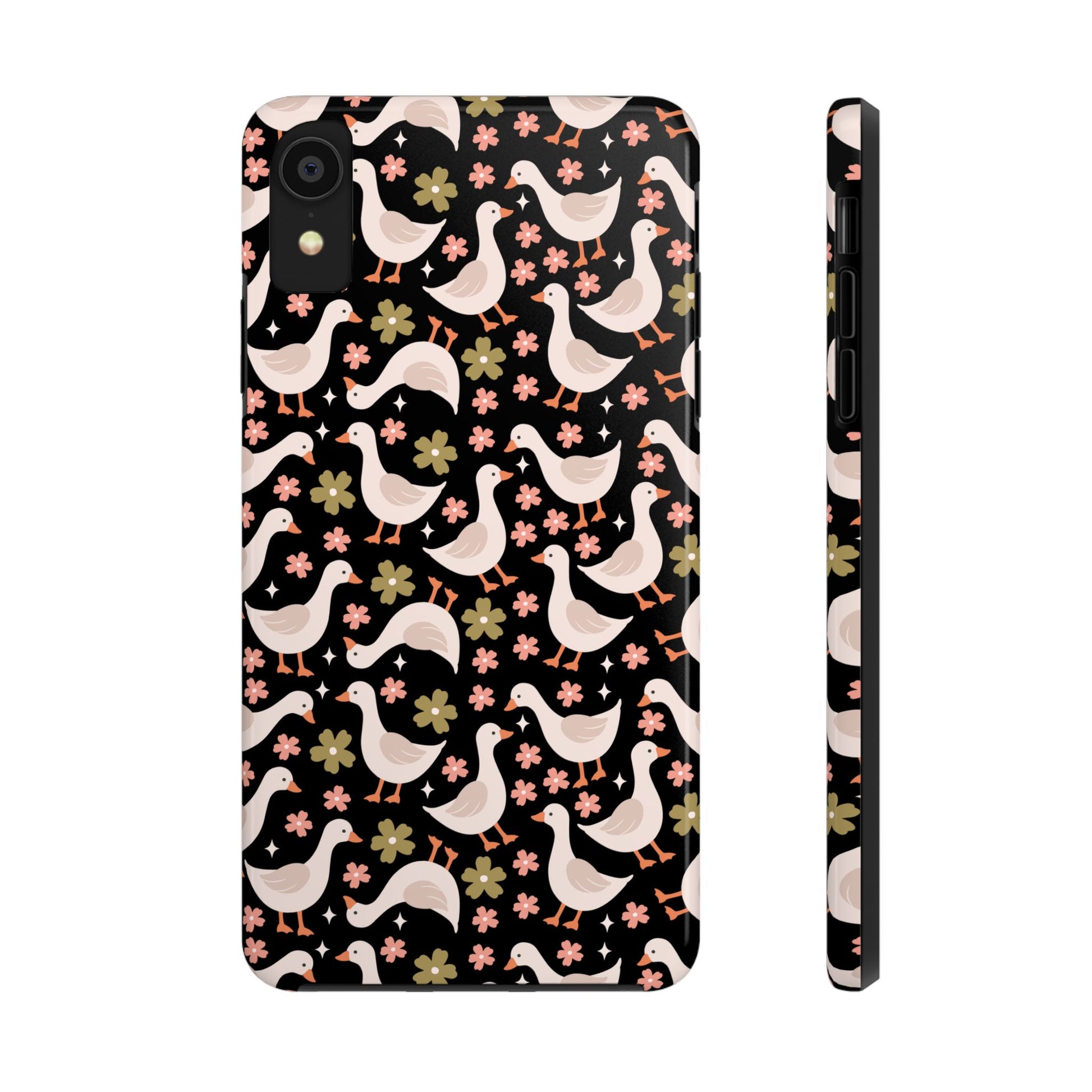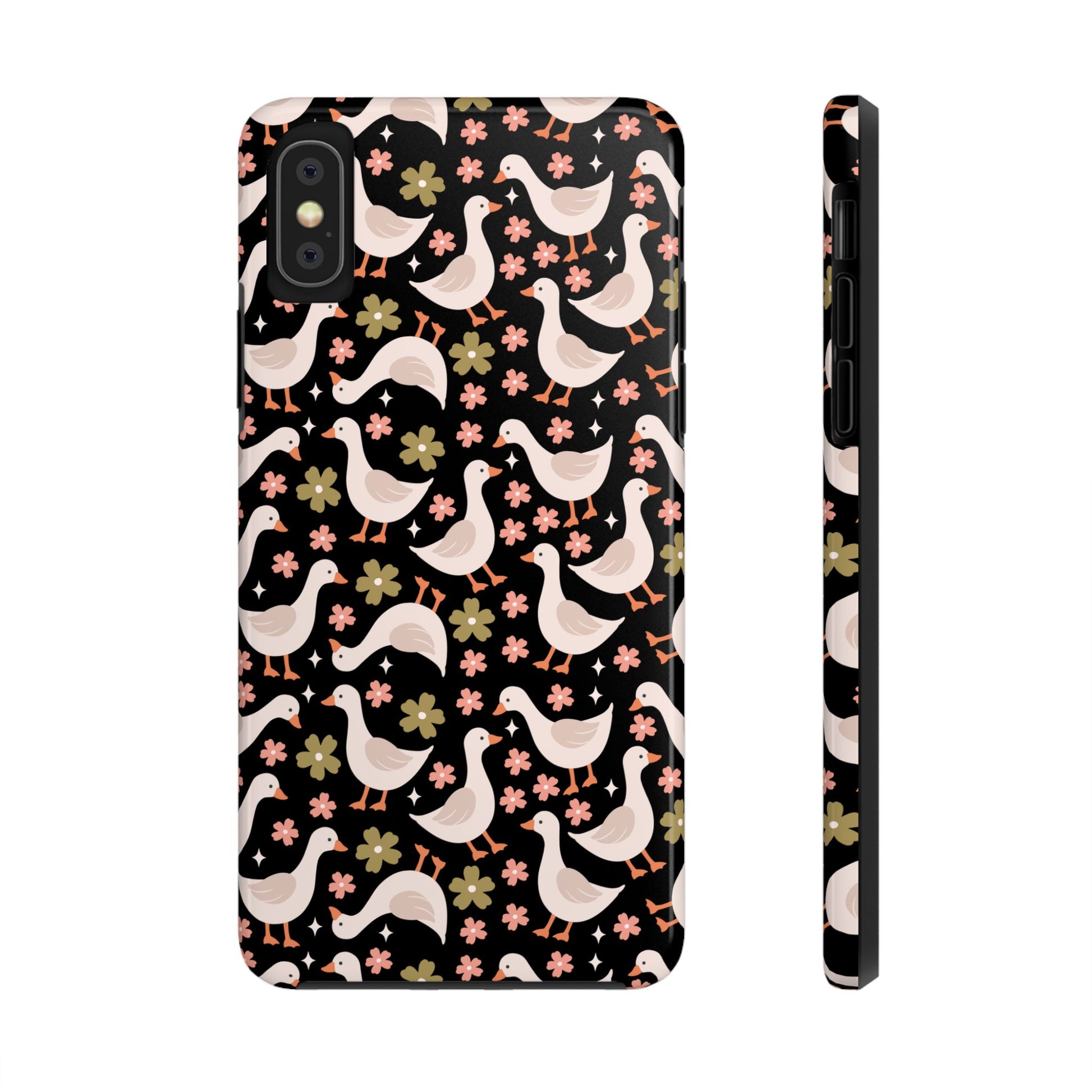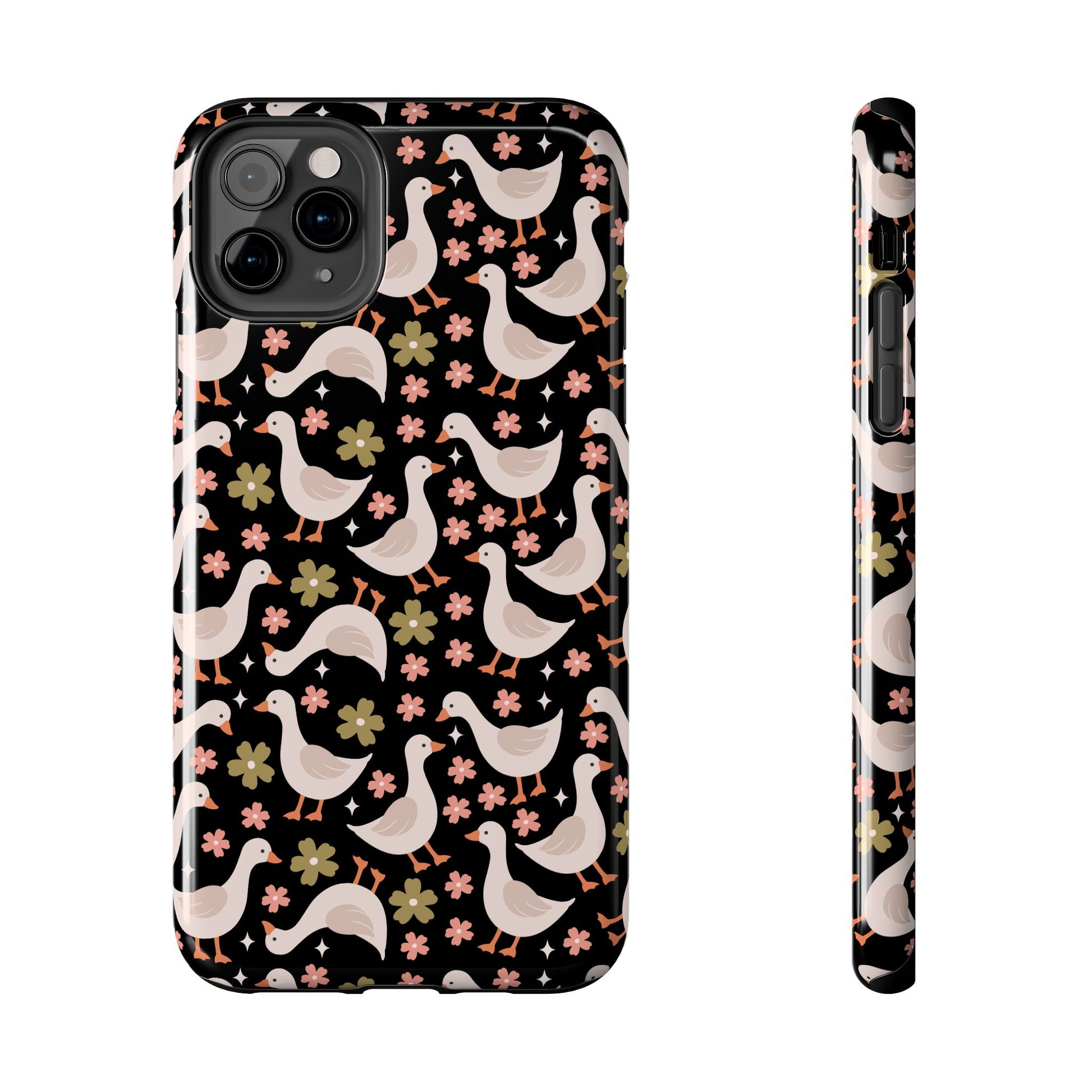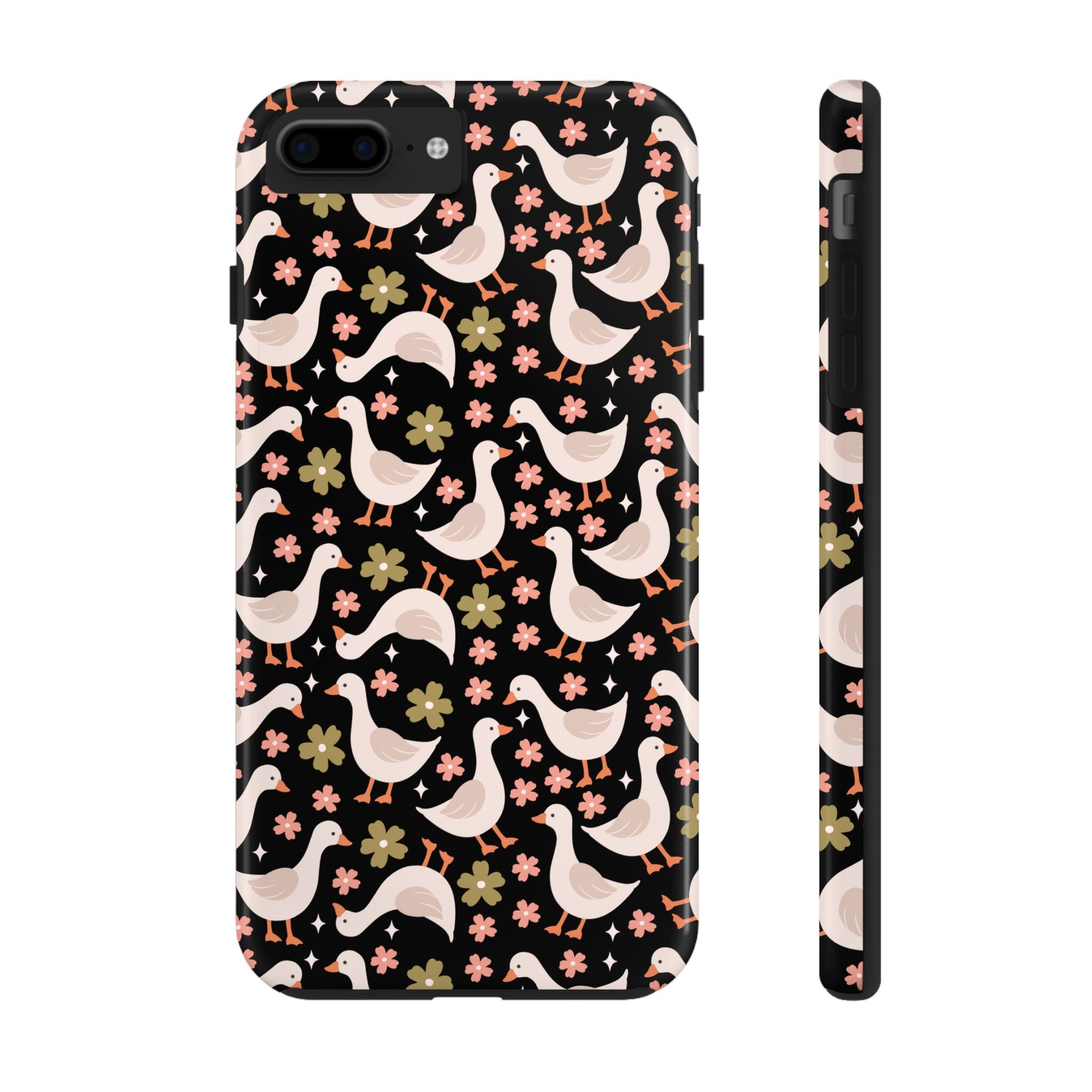 Cute Duck Pattern Phone Case, Stylish Tough Case, Gift for Duck Lovers, Floral Design, Unique Mobile Cover