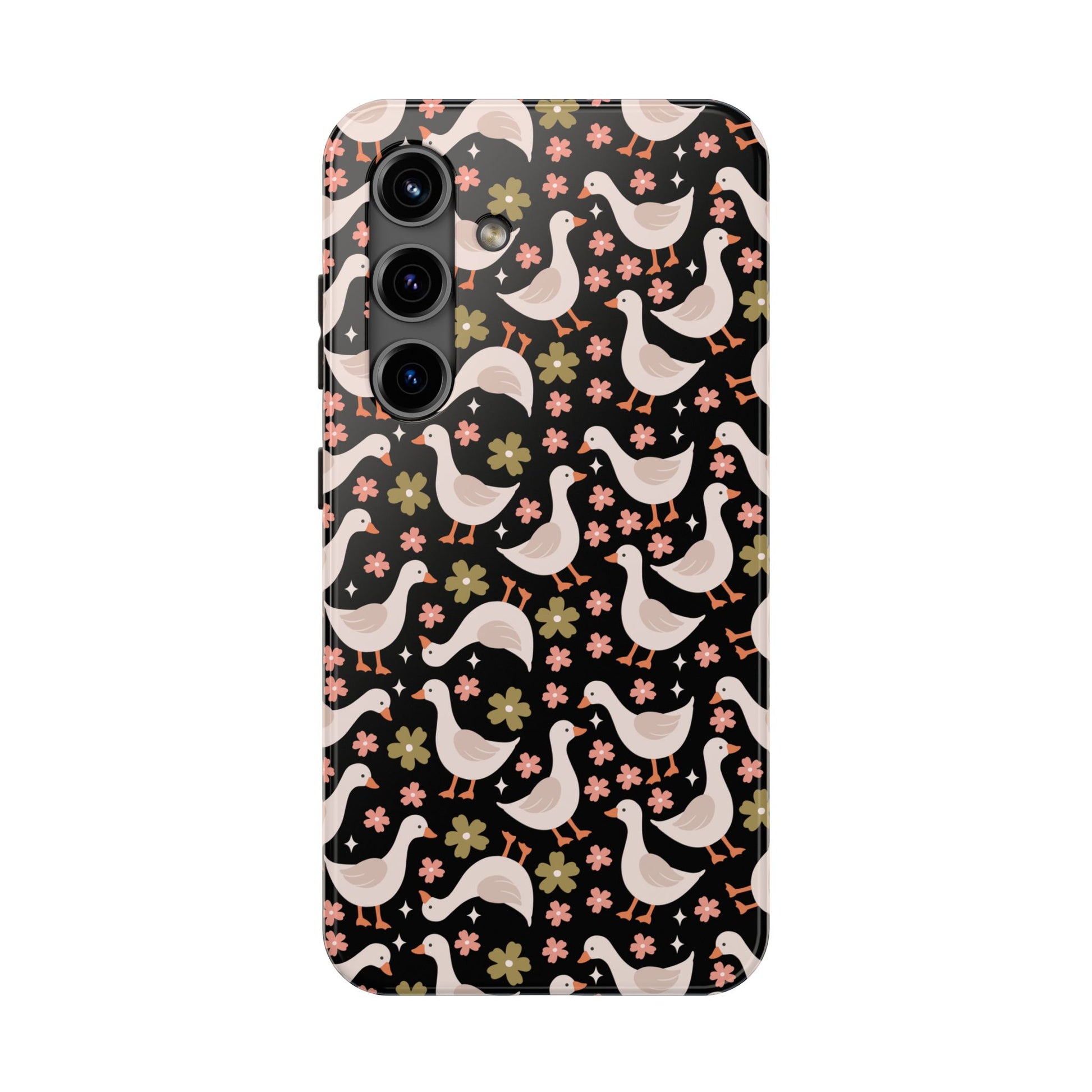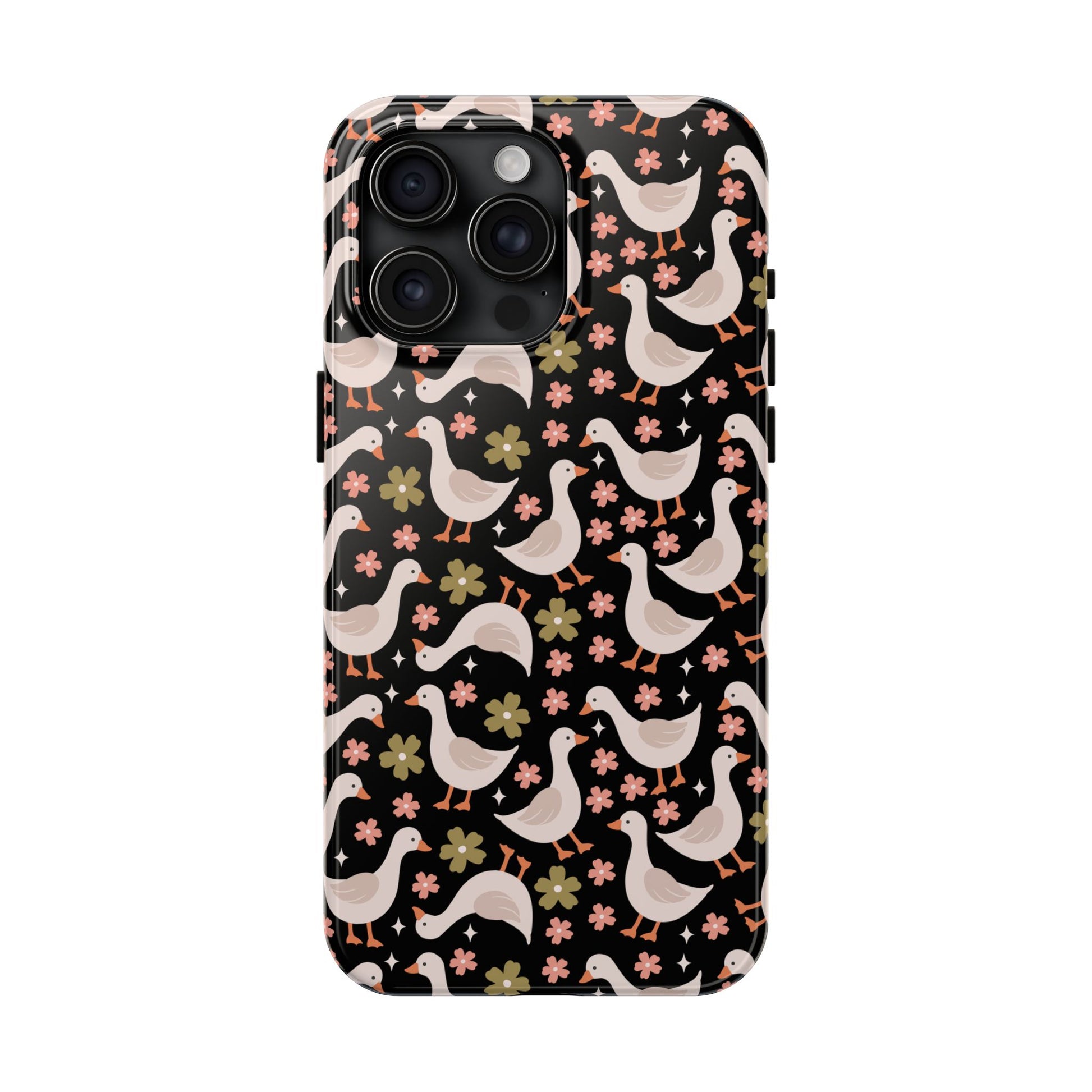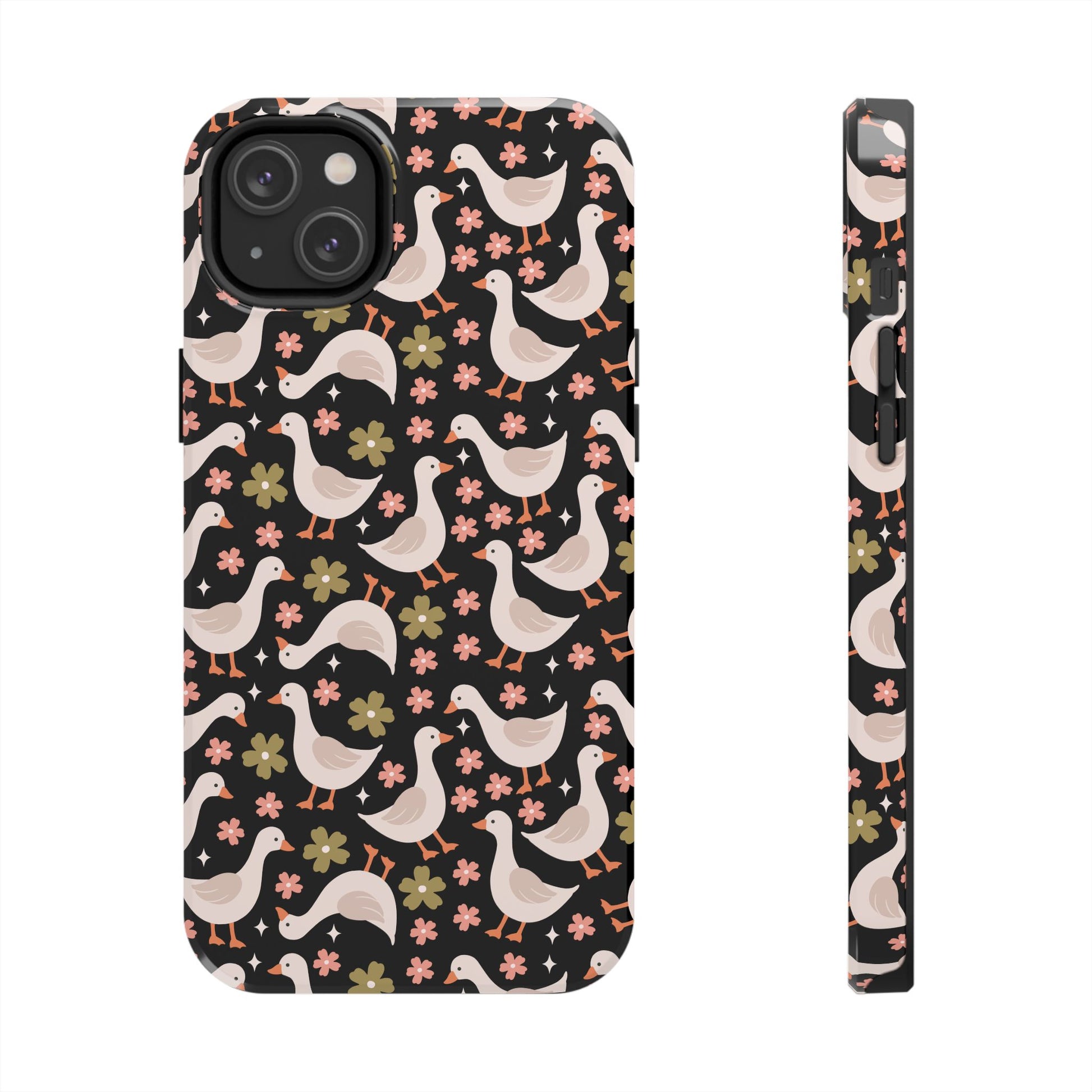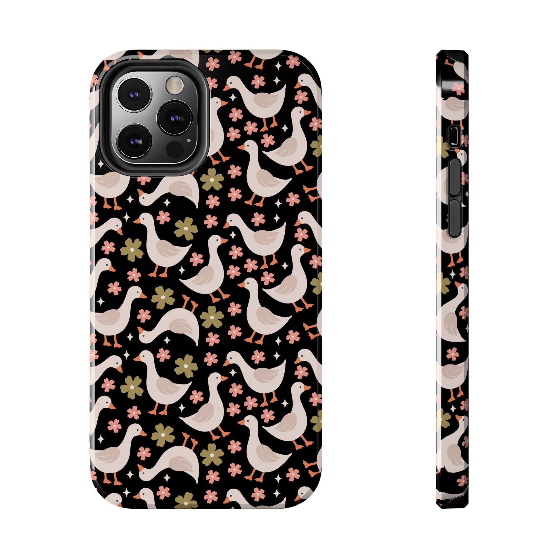 Cute Duck Pattern Phone Case, Stylish Tough Case, Gift for Duck Lovers, Floral Design, Unique Mobile Cover
