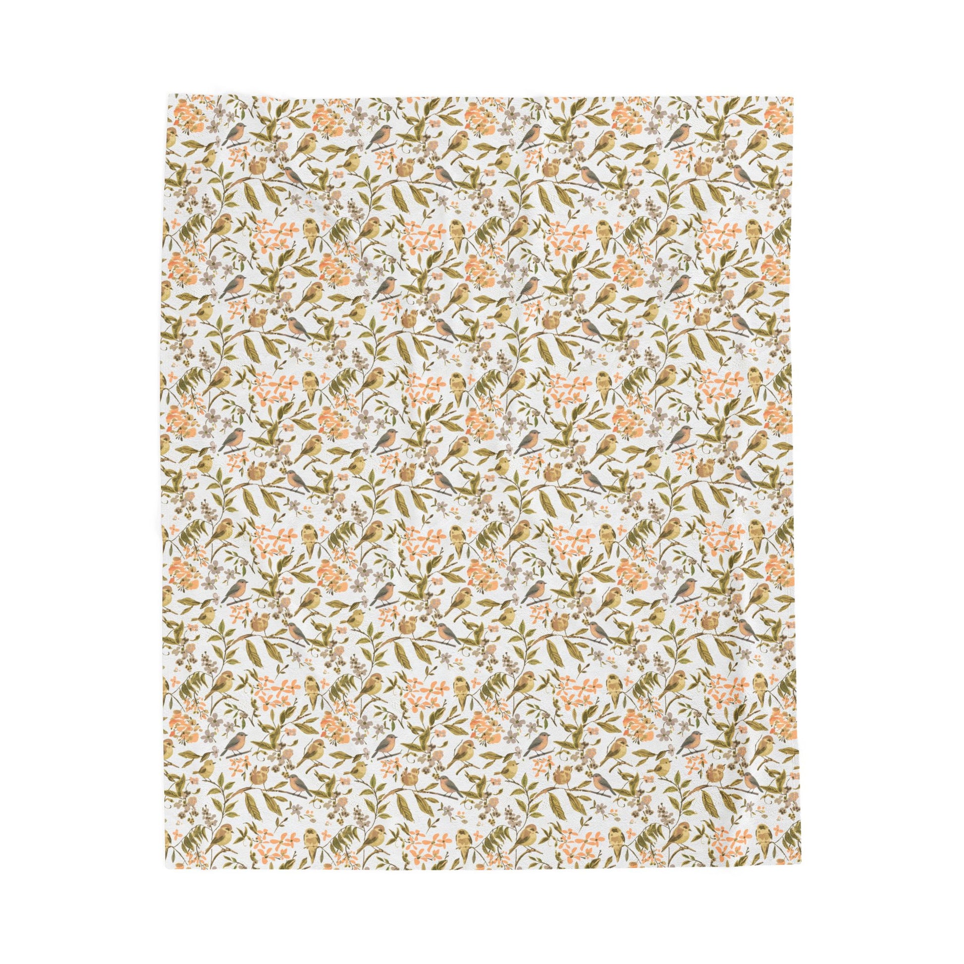 This velveteen plush blanket wraps you in a quiet, sunlit afternoon. A delicate floral pattern in soft peaches and olive greens runs across the surface, like a pocket of cottage garden pressed into fabric. The pile is velvety and warm without being heavy — a calm layer for reading on the couch, layering at the foot of a bed, or carrying out to the porch for morning coffee. It feels thoughtfully made: the edges are double-stitched for long wear, and the print holds crisp detail so the floral motif remains clear wash after wash. Use it when you want a gentle, familiar comfort that adds a soft, botanical touch to your room or ritual.