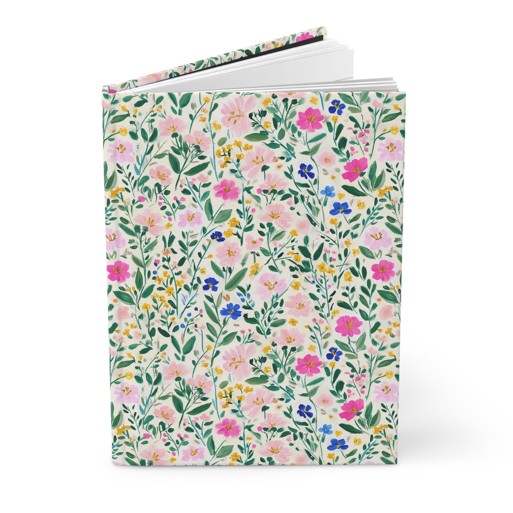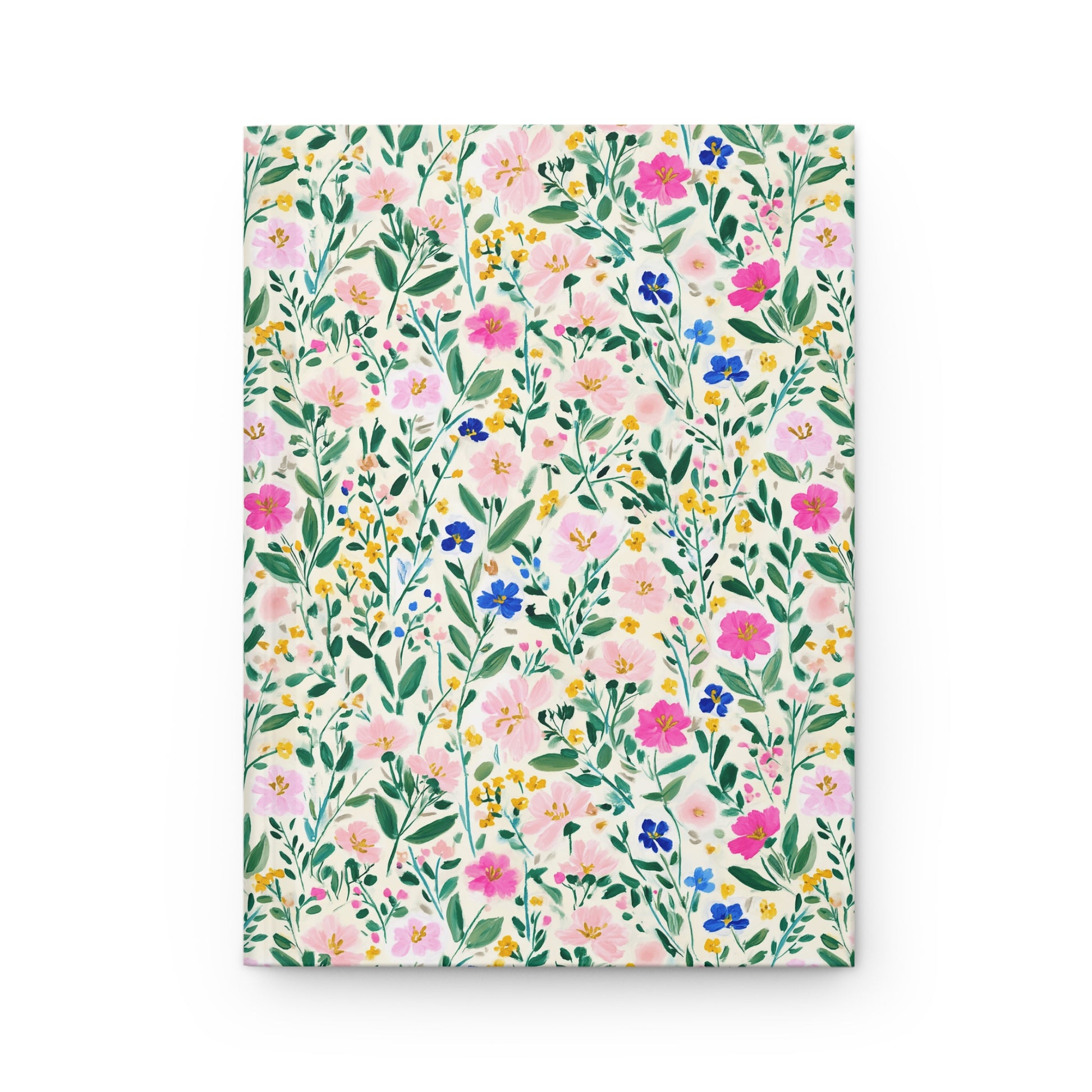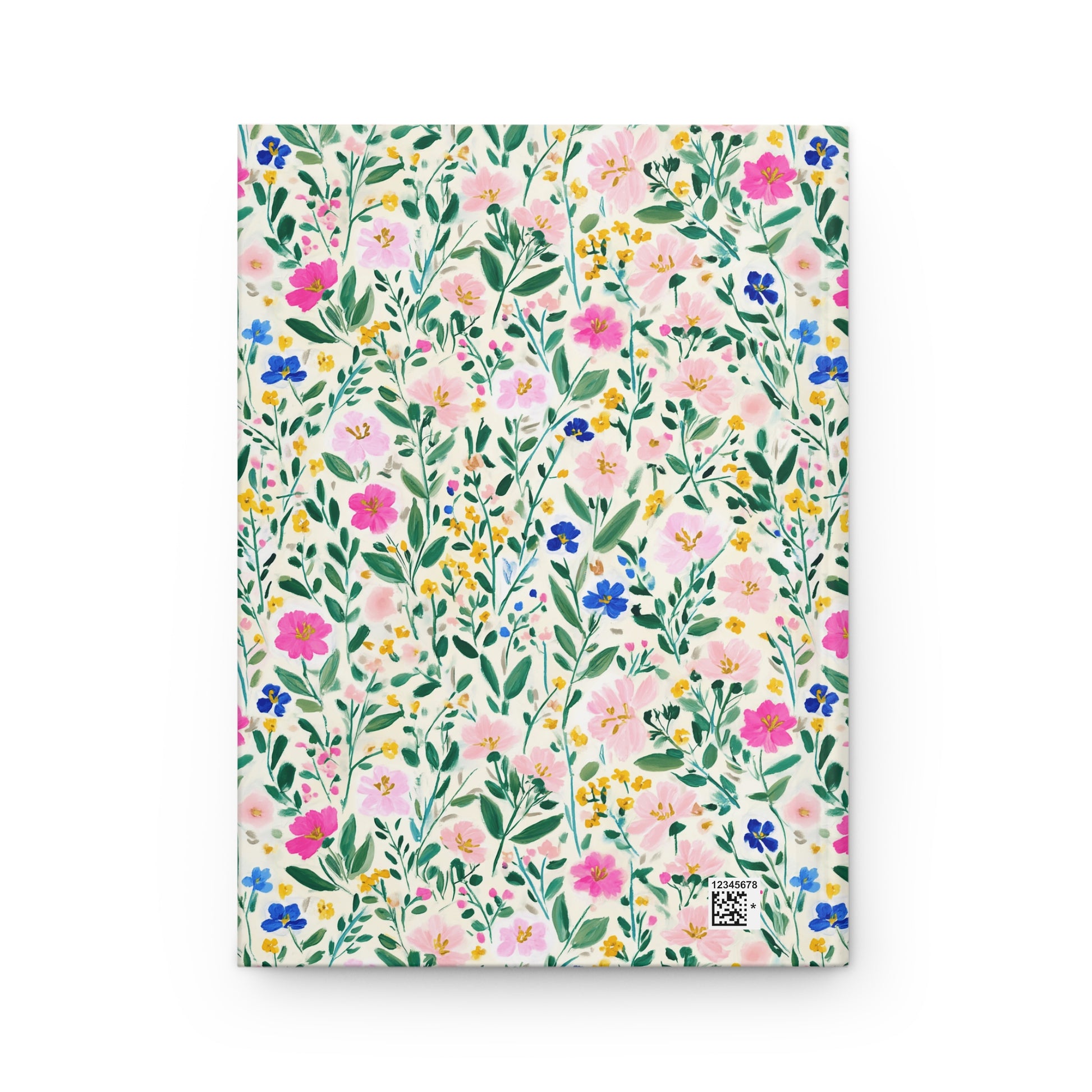 A soft, joyful hardcover journal wrapped in a watercolor meadow of wildflowers. The matte laminated cover feels smooth in your hands and keeps colors bright, while the sewn casewrap binding lets the book open flat and follow your writing. Inside, 150 lined pages give space for daily lists, poems, sketches, and plans — and perforated sheets make it simple to tear out a page when you want to share or tuck a note away. The floral full-wrap print carries the design across front and back for a cohesive, feminine look that slips easily into a tote or nightstand. Carry a pocket of spring with you and let it be the quiet place for small, honest pages.