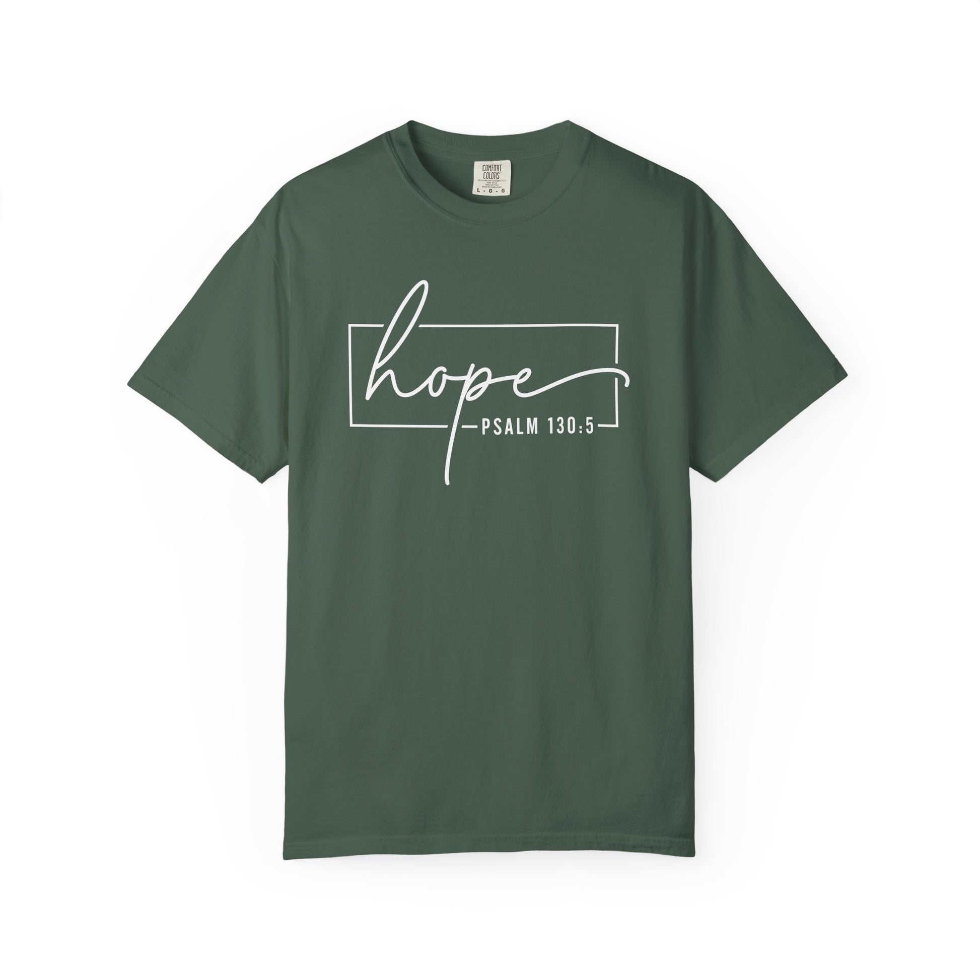 Hope T-Shirt, Garment-Dyed Tee, Inspirational Apparel, Christian Gift, Faith-Based Fashion, Psalm 130:5 Quote Shirt