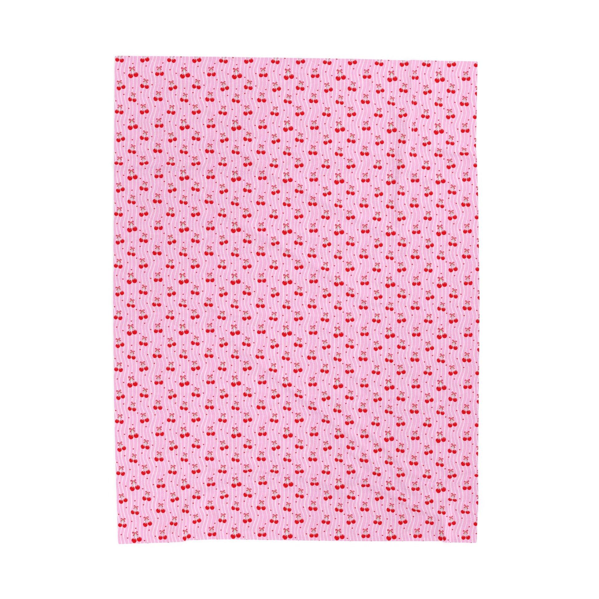 Pink Cherry Pattern Velveteen Plush Blanket — Soft Cozy Throw for Kids & Gifts