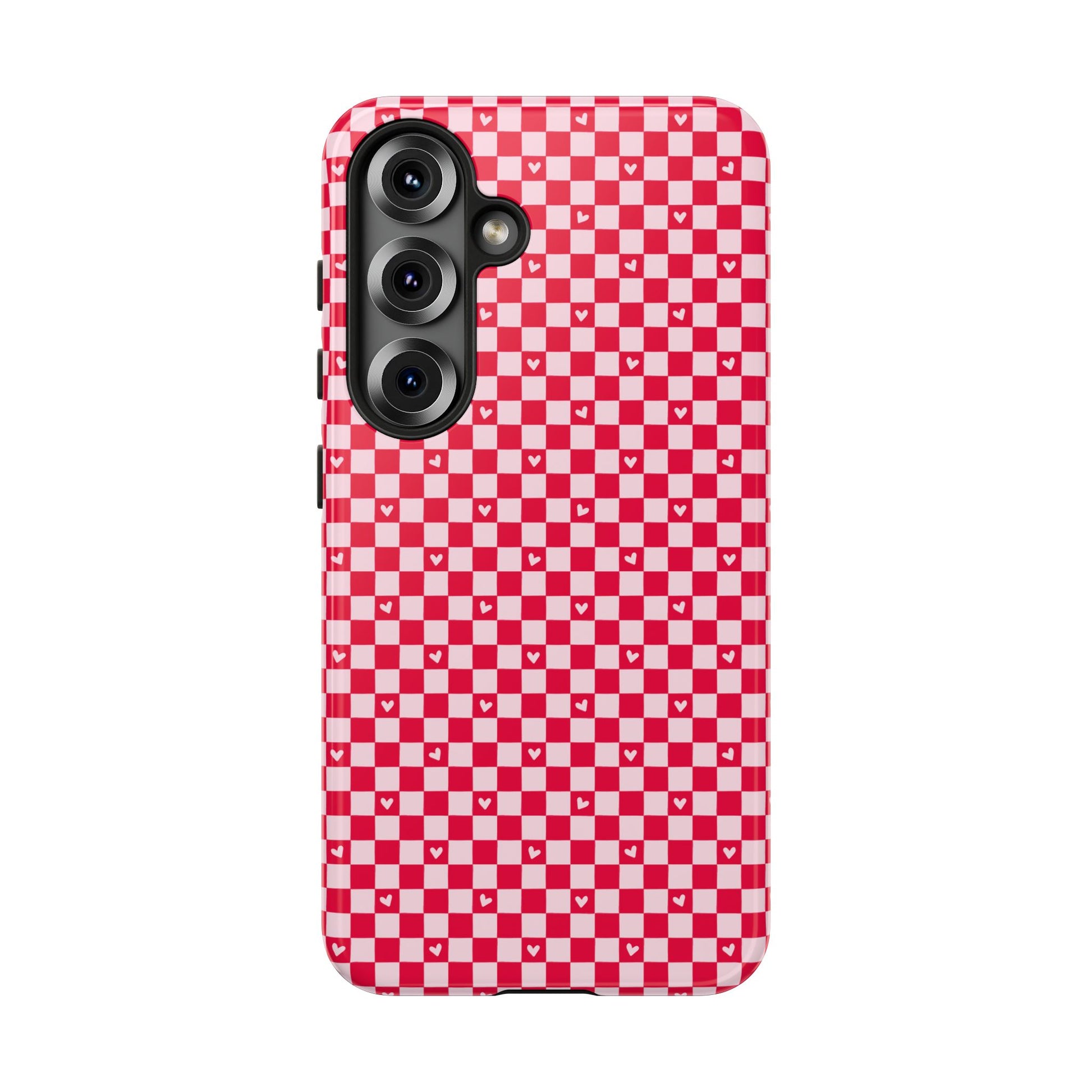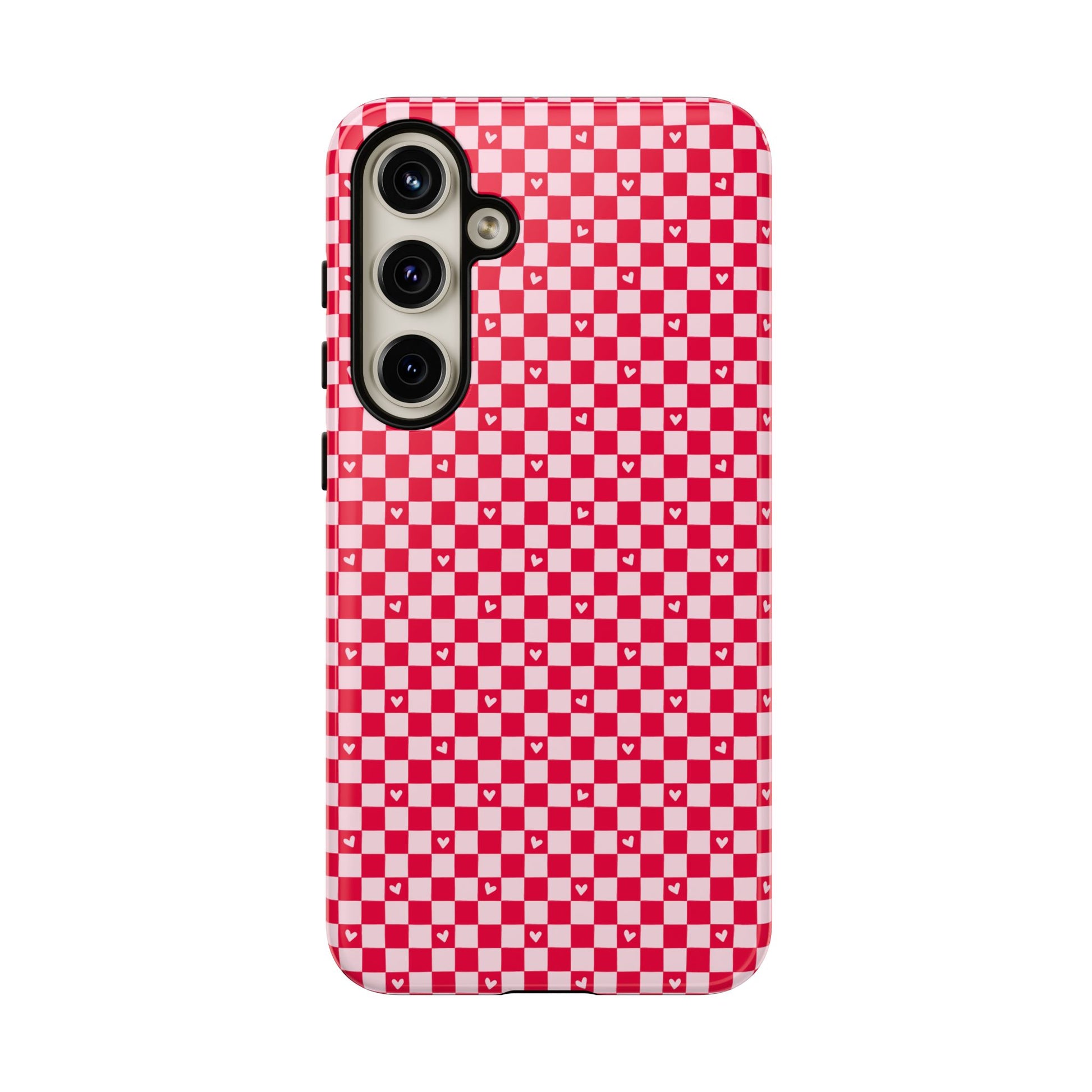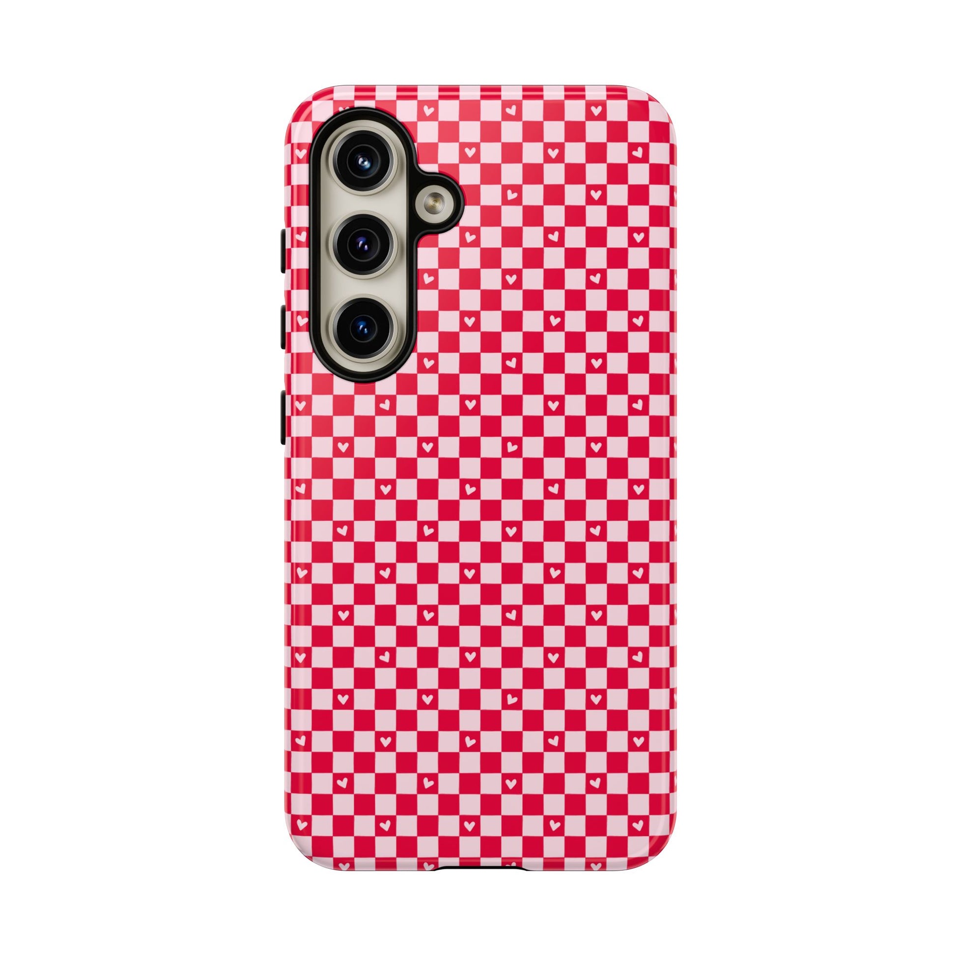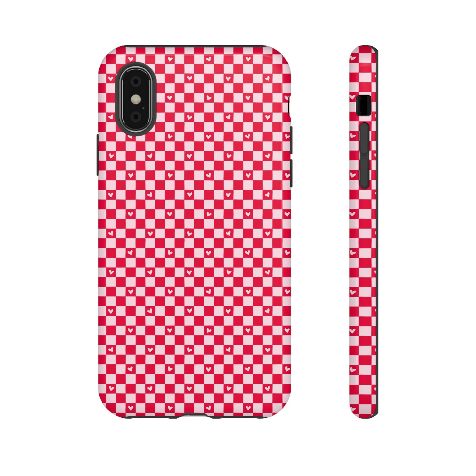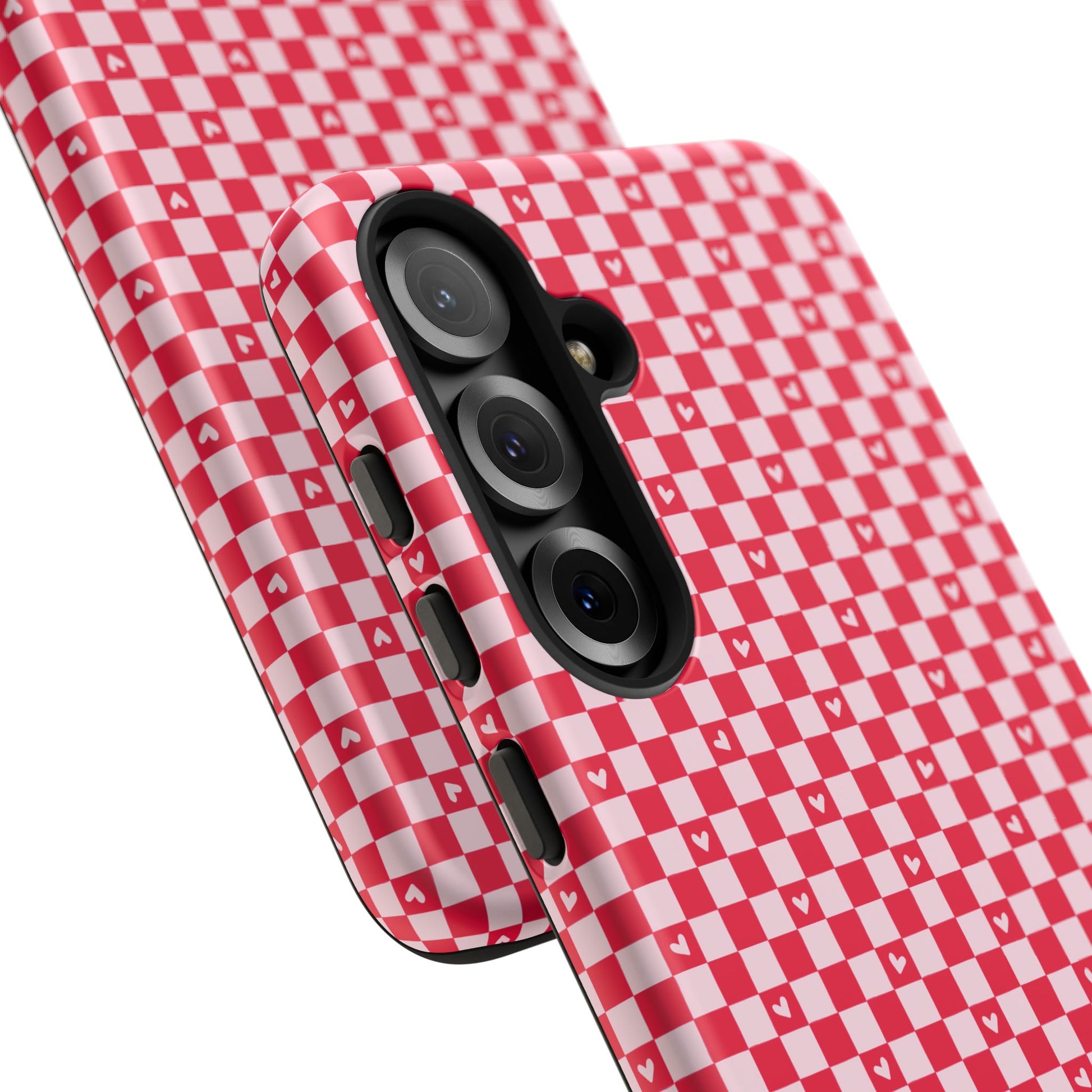 A glossy or matte dual-layer phone case that brings playful vintage energy to your daily carry. The red-and-white checkerboard pattern is softened by tiny heart details tucked into the squares, creating a look that’s bold from a distance and delightfully detailed up close. The hard polycarbonate shell and TPU silicone liner work together for drop protection and shock absorption, while full ink 3D wrap printing keeps the design seamless around edges. Lightweight and wireless-charging friendly, this case fits into active lives without adding bulk — it’s the kind of everyday accessory that brightens a pocket, a coffee table, or a quick snapshot on the go.