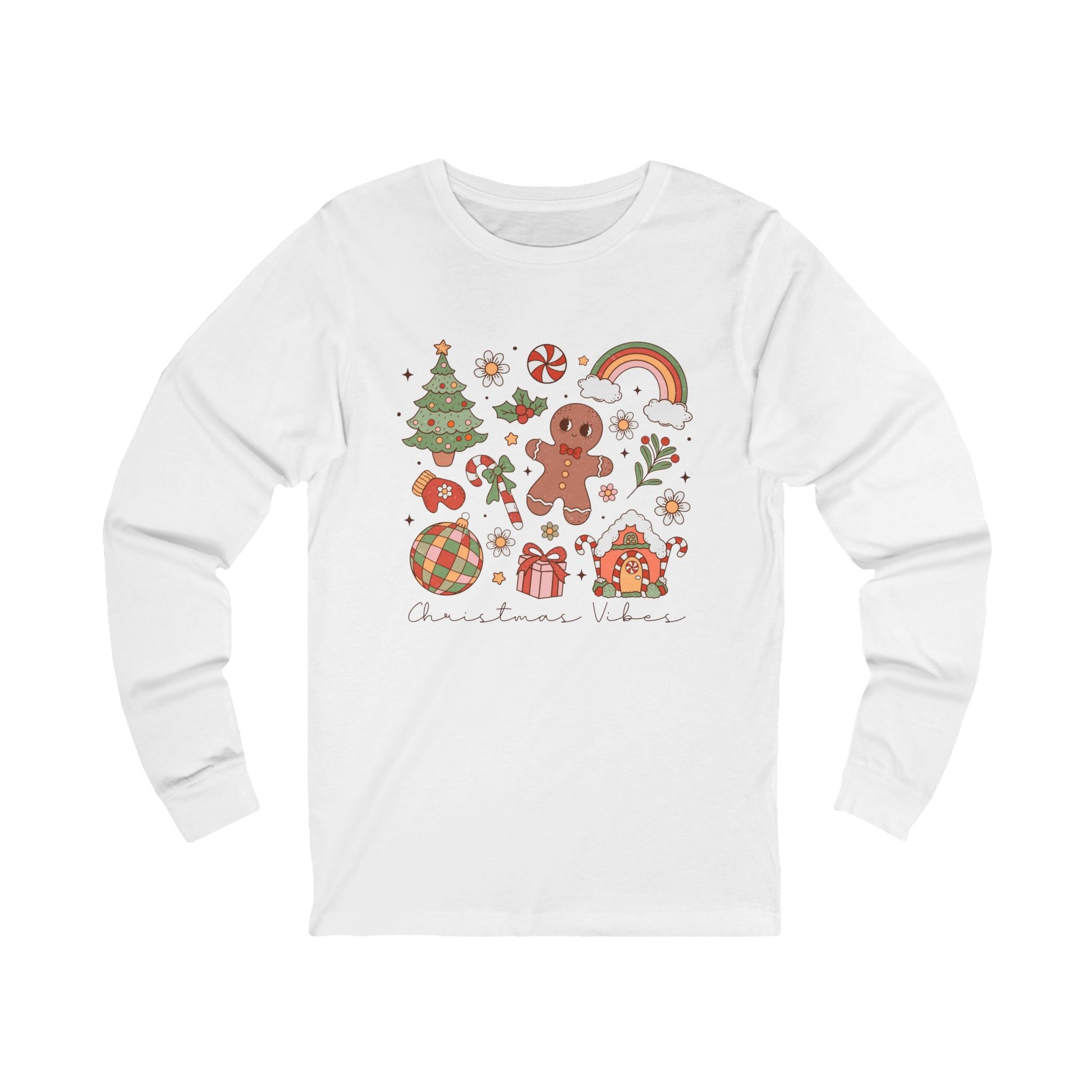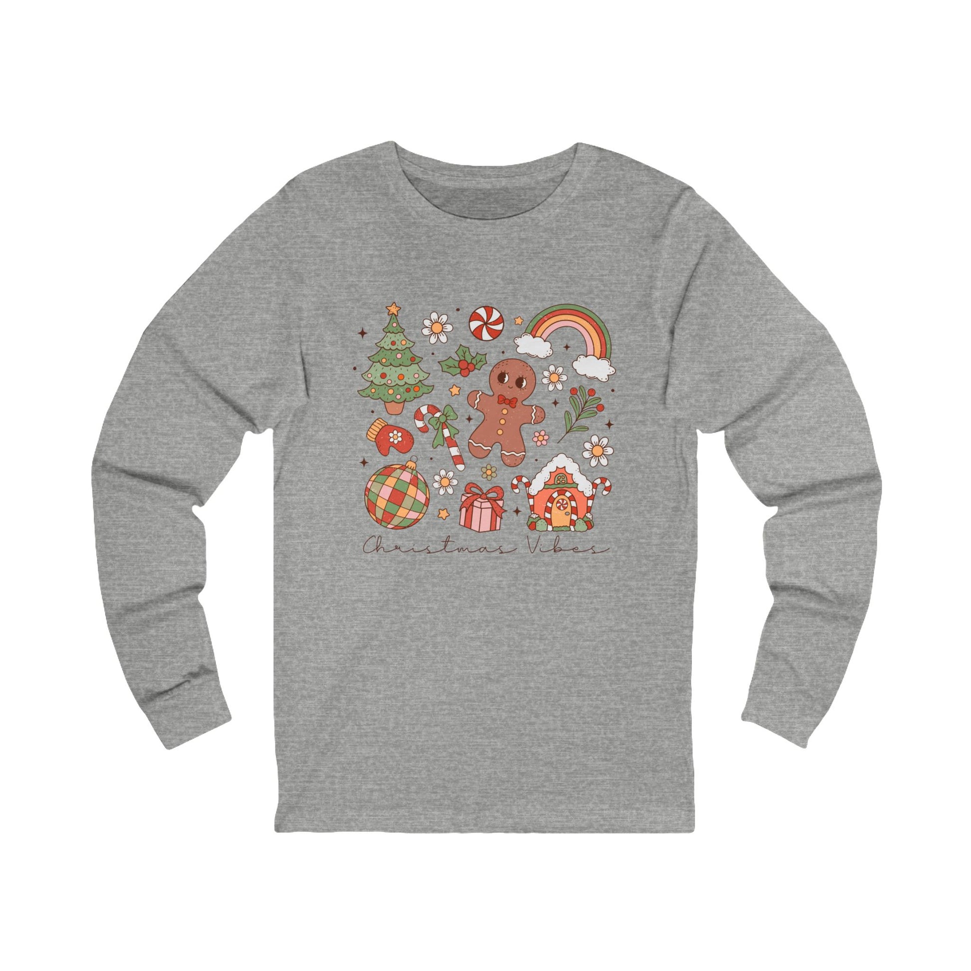 Vintage Christmas Vibes Long Sleeve Tee, Xmas Holiday Shirt, Retro Winter Top, Festive Unisex Tee, Christmas Graphic Tee, Cozy Holiday Shirt